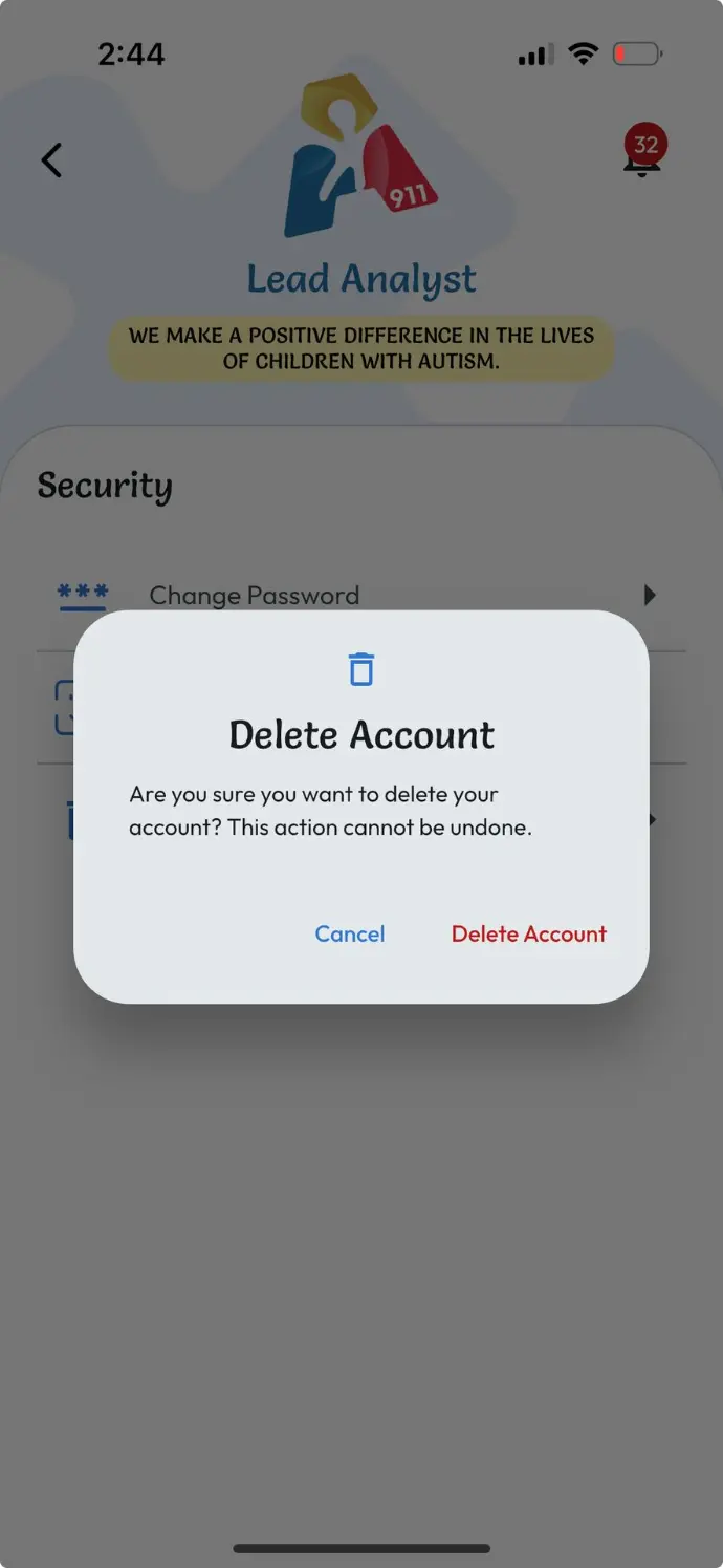 If you choose to delete your account, all associated data will be permanently removed from the Autism 911 HelpLine platform.